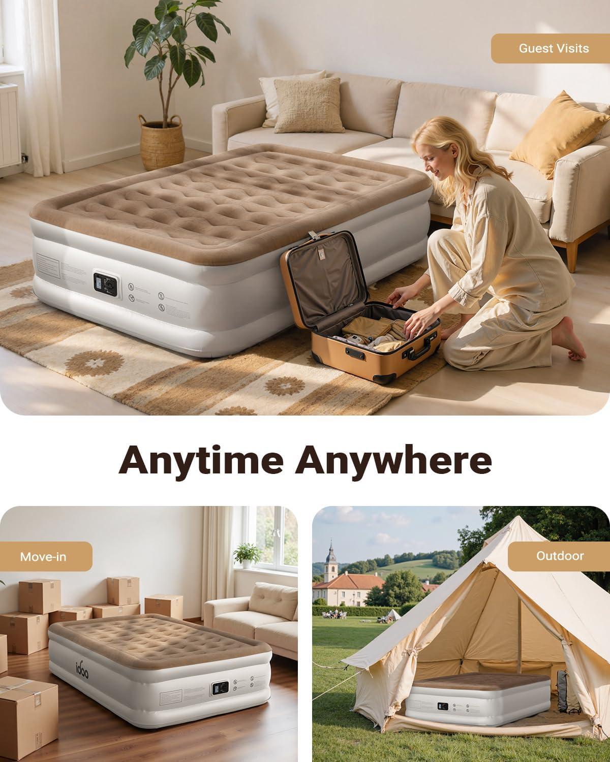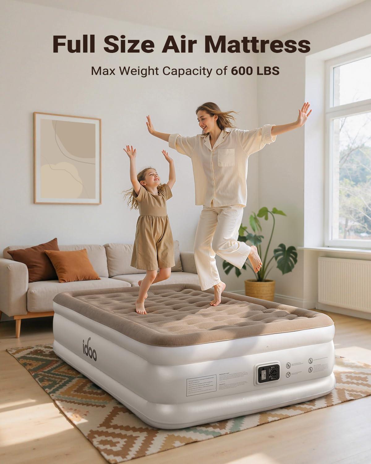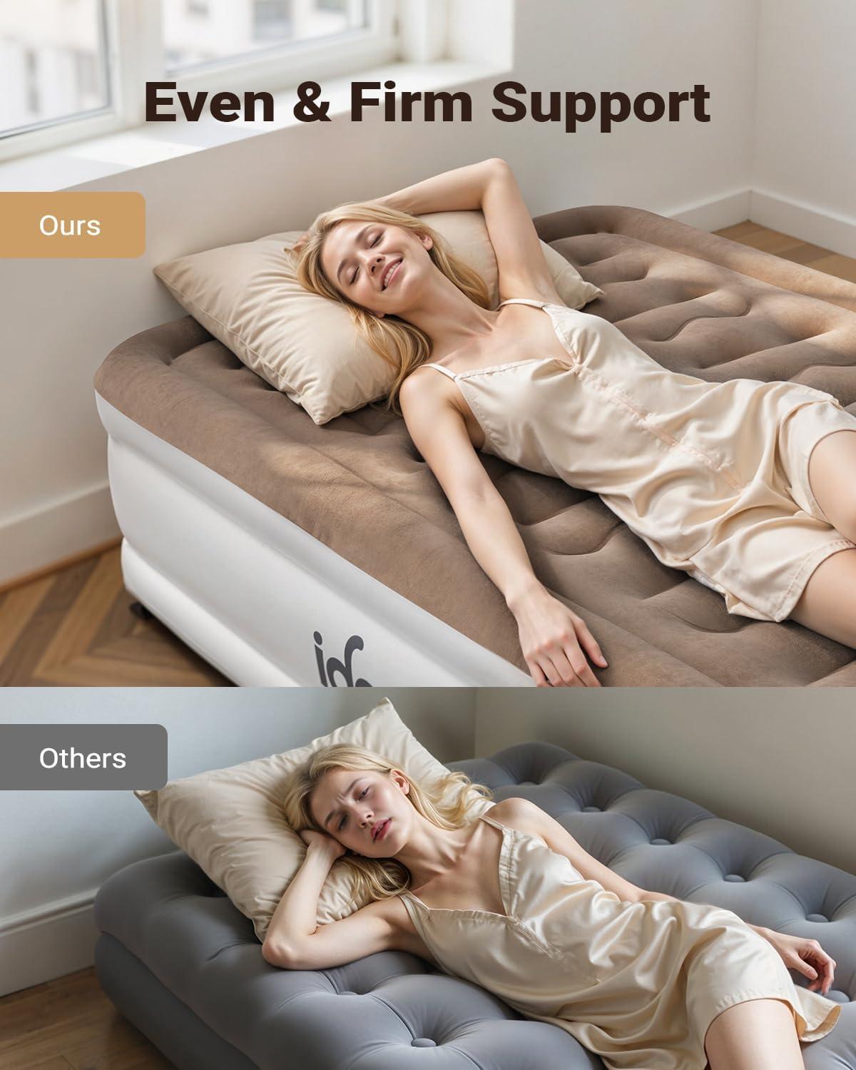 Effortless Setup: This air mattress full is equipped with an upgraded electric built-in pump that quickly inflate/deflate in just 3 minutes, making blow up mattress full more convenient and efficient to use
