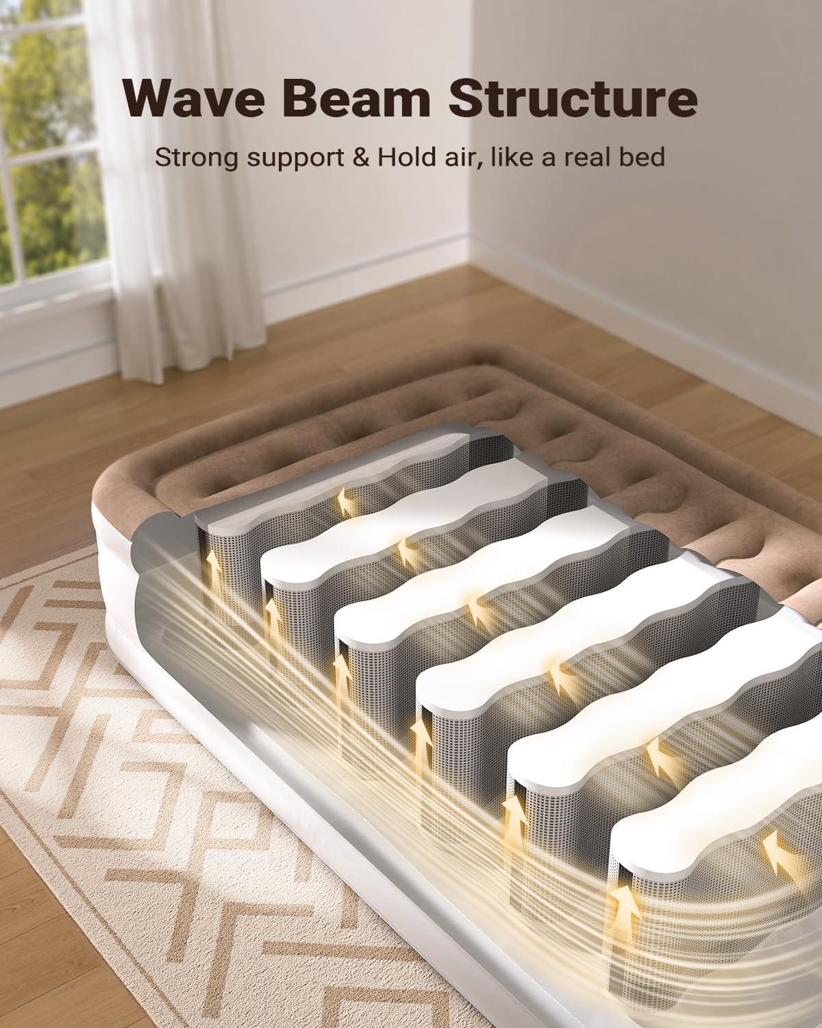 Unique Parallel-Beam Structure: Our full size air mattress features smart beam structure that can better adapt to your body's natural contours, giving the inflatable mattress full excellent support and stability