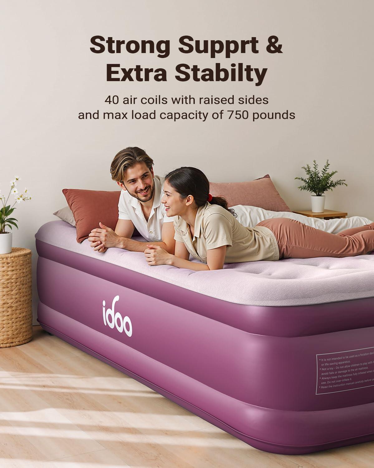 Sweet Sleep: Our blow up mattress queen features smart air coils, conforming to your natural curves to deliver superior support and stability, ensuring peaceful and sweet sleep throughout the night