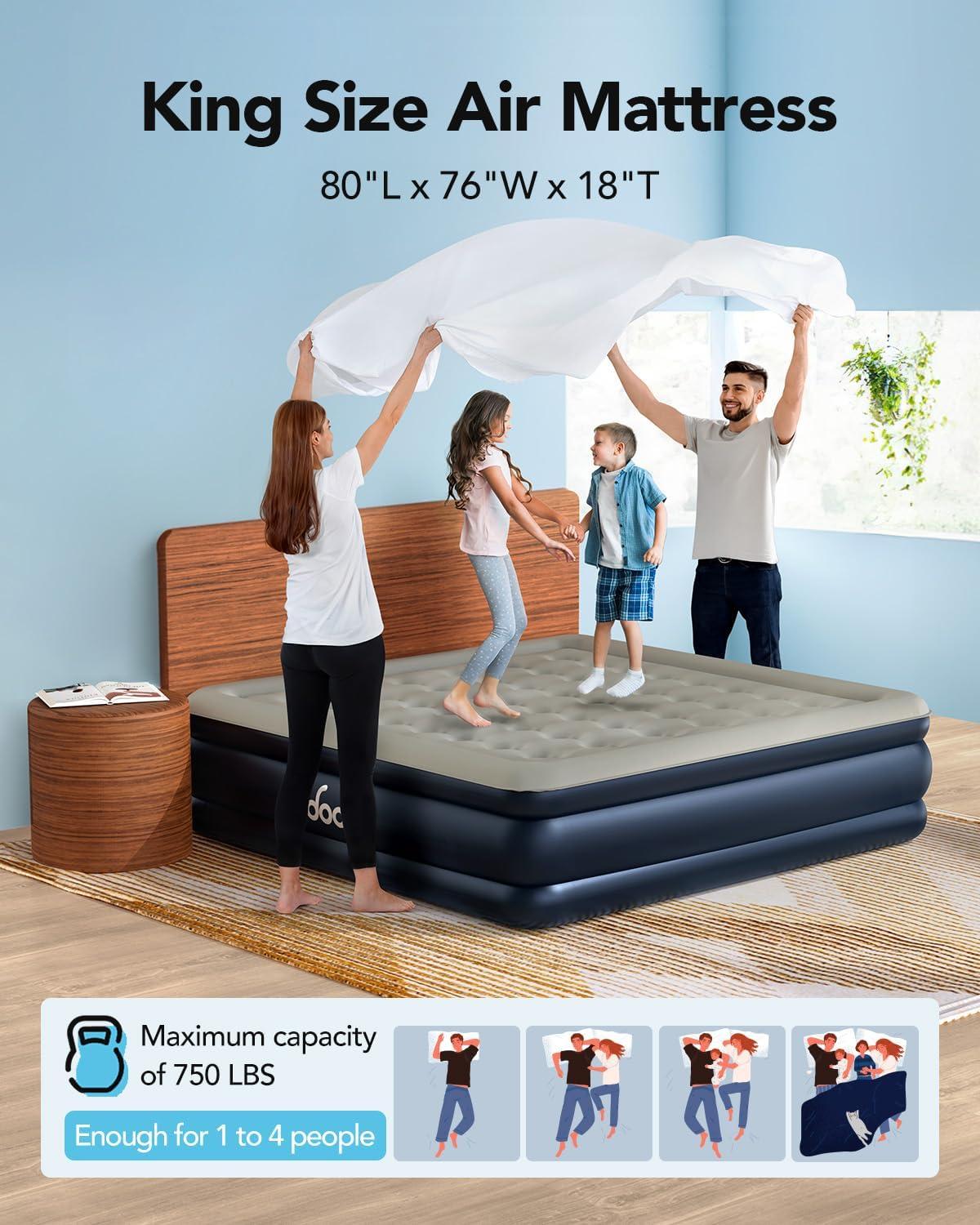 Sturdy Support and Stability: This blow up mattress queen boasts 40 internal air coils that offer strong support and stability from head to toe, with a maximum load capacity of 650 lbs