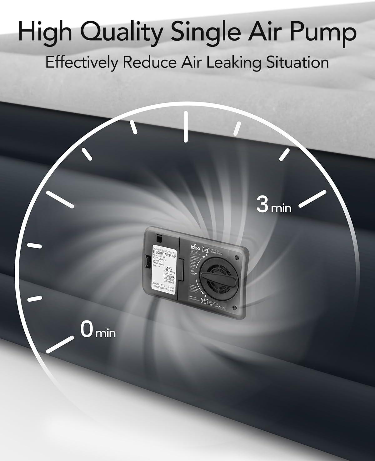 iDOO Air Mattress Queen with Built in Pump, Blow up Mattress, Inflatable Mattress Queen Size for Guests, Home, Camping, 3 Mins Inflation/Deflation, Upgraded Colchones Inflables, Comfort Air Bed(Grey)