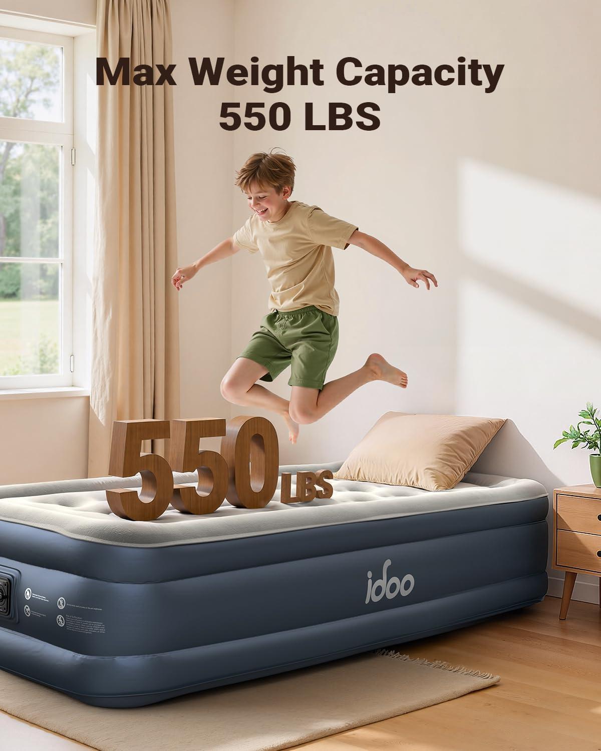 iDOO Air Mattress Queen with Built in Pump, Blow up Mattress, Inflatable Mattress Queen Size for Guests, Home, Camping, 3 Mins Inflation/Deflation, Upgraded Colchones Inflables, Comfort Air Bed(Blue)