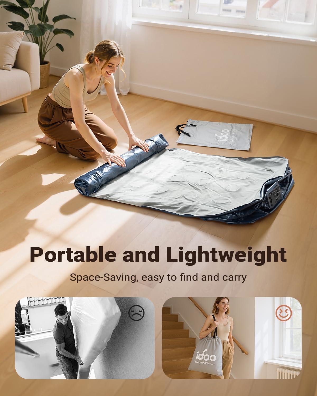 Upgraded Materials: iDOO air mattress queen with built in pump features a upgraded flocked fabric surface that is comfortable and waterproof. Meanwhile, the bottom of the air mattress, made from high-quality PVC material, effectively reduces noise and prevents tipping or slipping
