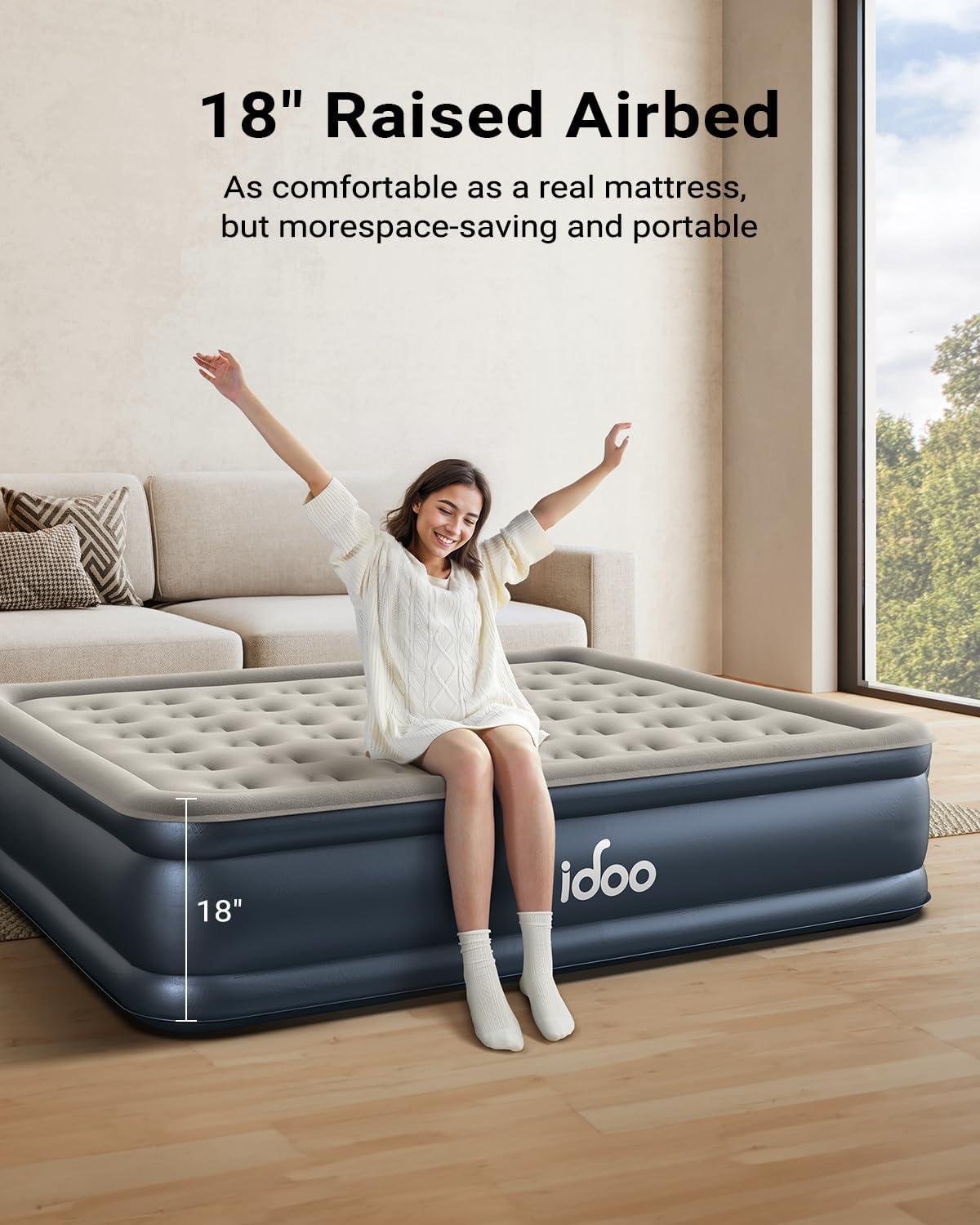 iDOO Air Mattress-Comes with a convenient carry bag, the Cal King Airbed can be easily folded to storage and carry, its compact, lightweight and space-saving, ideal for temporary use, guest bed air mattress, tall person camping air bed, home family gathering, Party, moving-in, renting house, outdoor camping