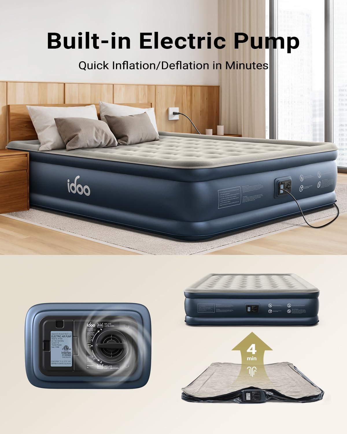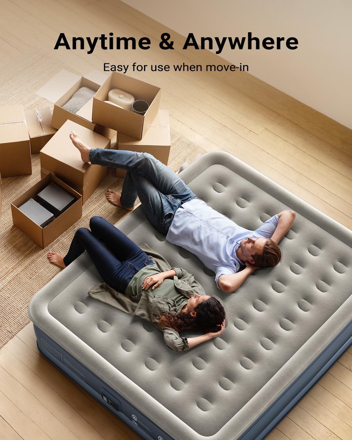 Fastest Built-In Pump: This XL King Air Mattress, comes with an upgraded electric pump, can quickly inflate/deflate within 4 minutes, making air mattress king size more convenient and efficient to use
