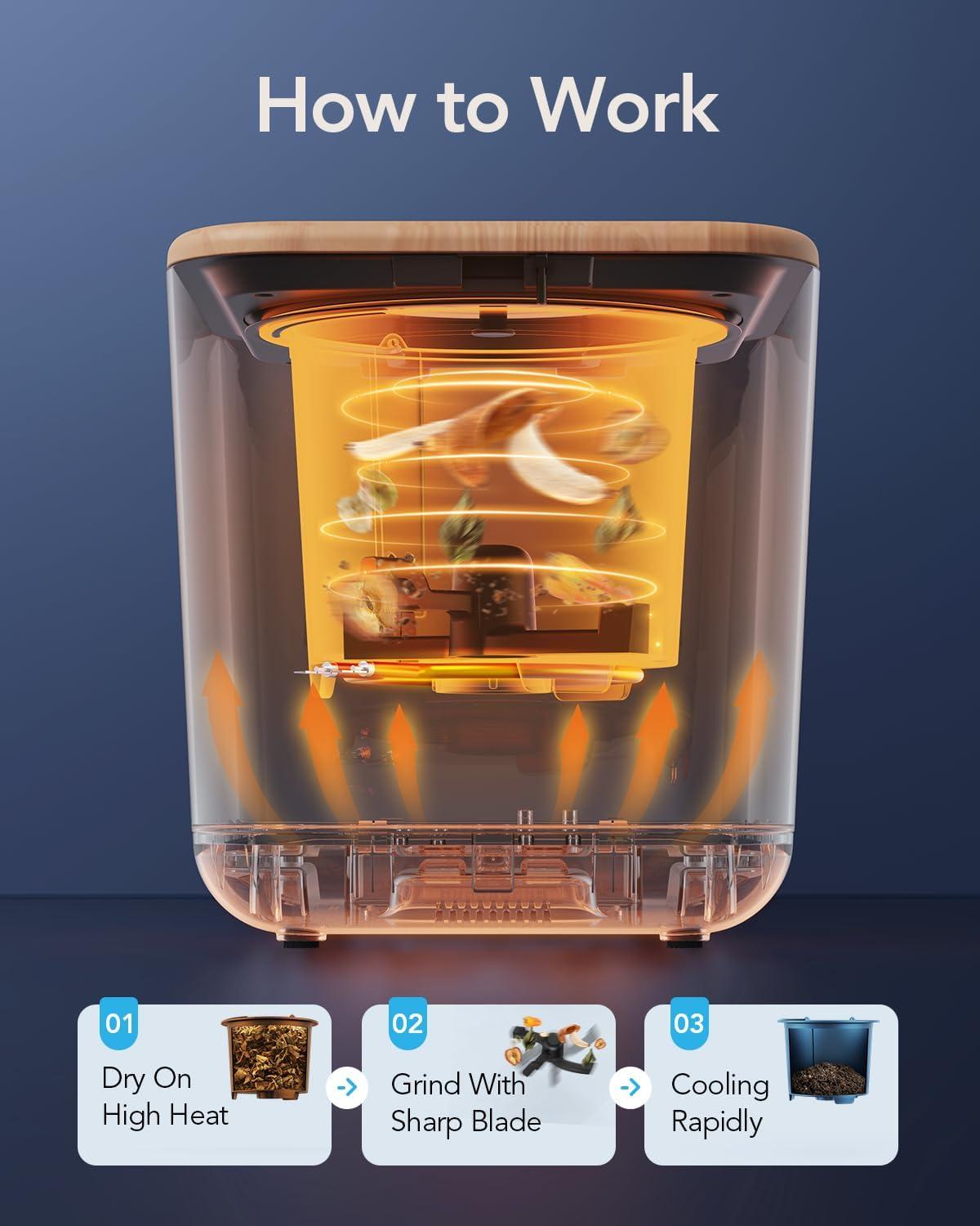 Automatic Operation: Simply load your food waste into the top compartment, and the machine will automatically process it, eliminating the need for manual composting.