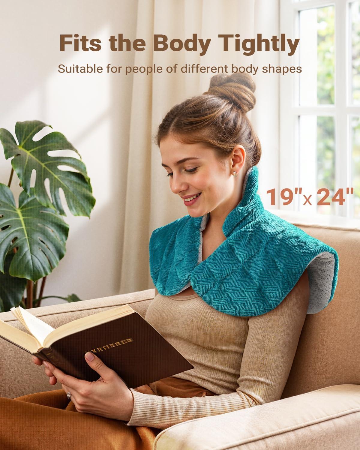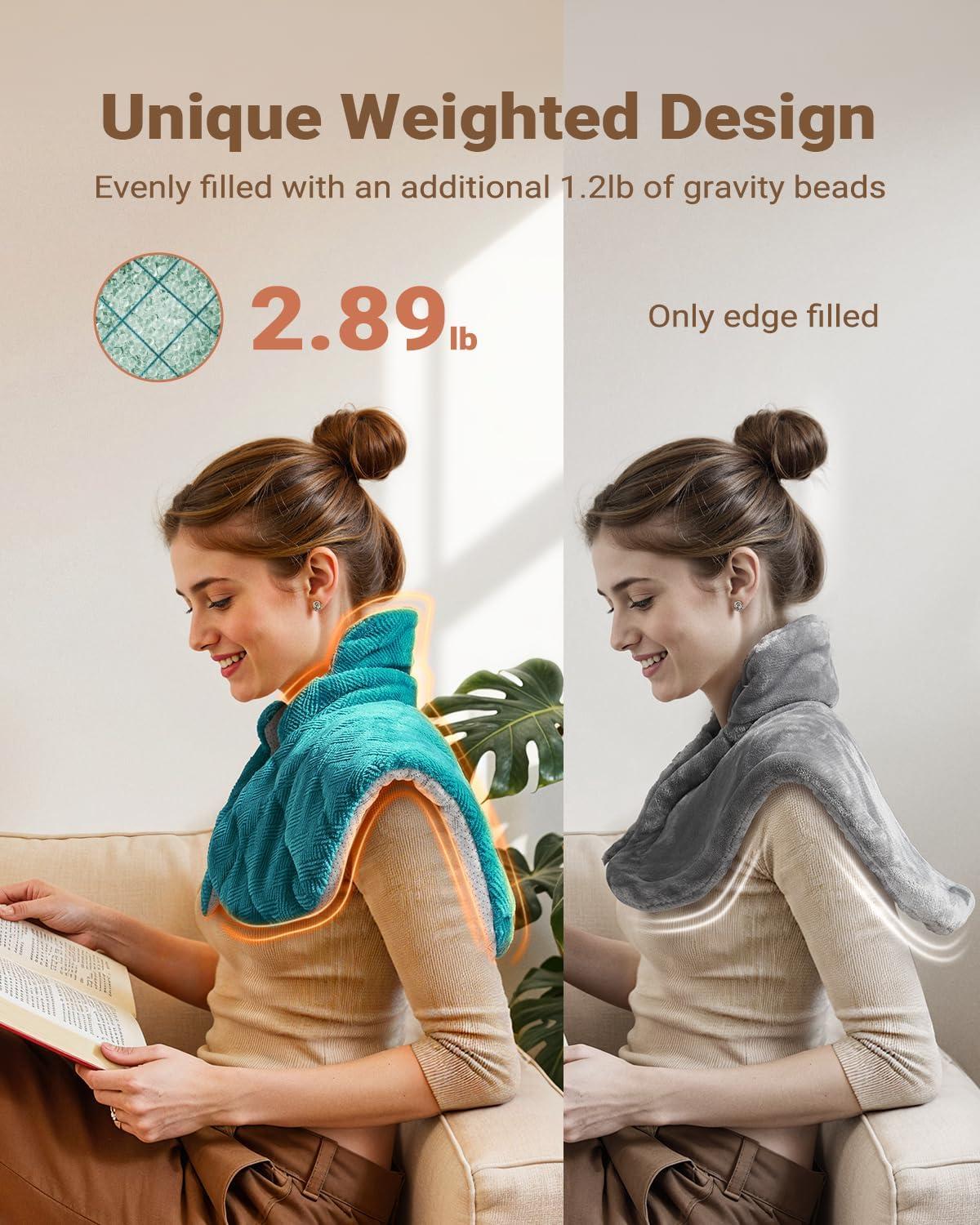 2.89lb Weighted Design for Full-Body Comfort:Filled with evenly distributed micro glass beads, this weighted heating pad molds perfectly to your neck, shoulders, and back—like a comforting hug. The balanced weight enhances heat contact and stability, making it an ideal heated neck wrap and versatile heat pad for neck and shoulders. It can also be applied to the waist, abdomen, legs, or arms for targeted pain relief wherever you need it.