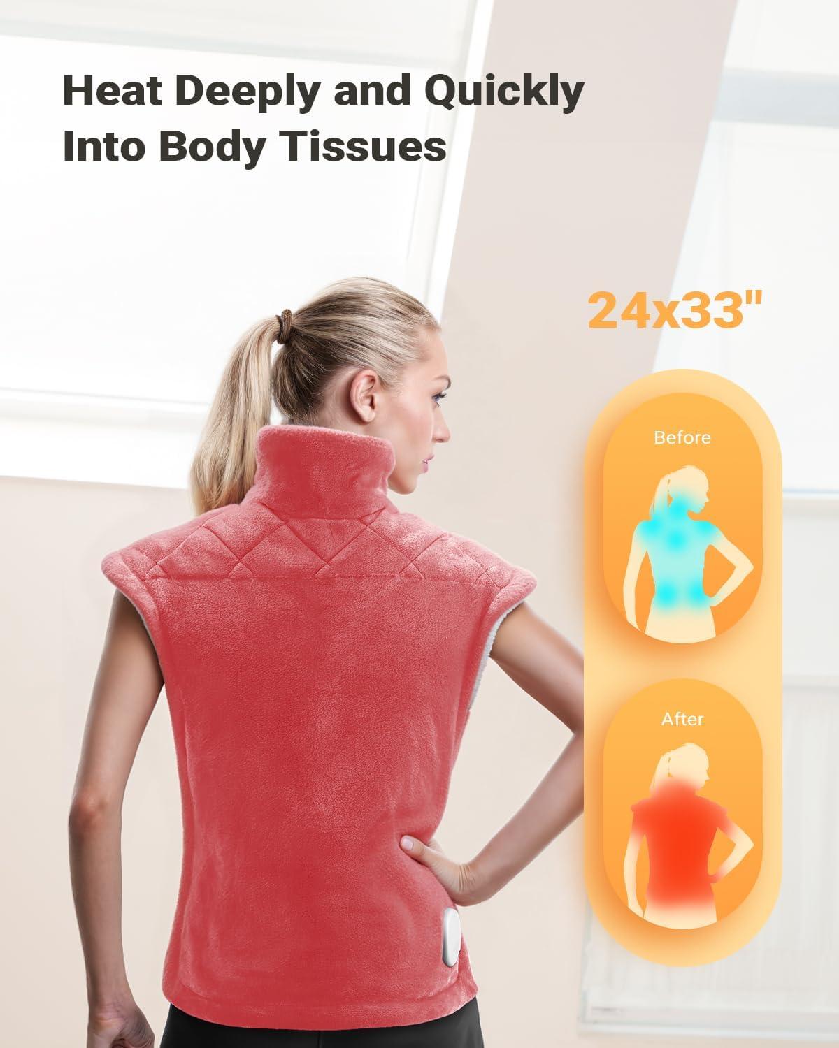 Safe & Energy Efficient: This ETL-certified heating pads with the upgraded PTC/NTC heating wire design with overheat protection, high temperature protection, It can prevent overheating and scalding your skin, built-in dense heating wire ensures that the electric heating pad heats up quickly and evenly.