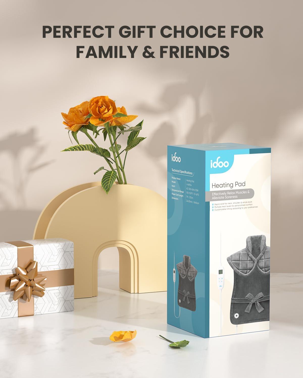 iDOO Heating Pad for Back Pain Relief, Large Weighted Electric Heat Pad for Neck Shoulders, Christmas Birthday Gifts for Women Men Elderly, FSA Eligible Items only List, 24″x33″, ETL Certified, Gray(A-24″x33″)