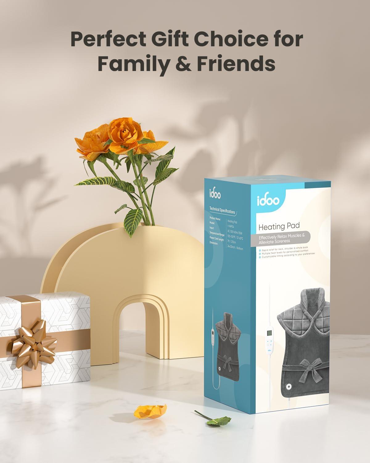 iDOO Heating Pad for Back Pain Relief, Large Weighted Electric Heat Pad for Neck Shoulders, Christmas Birthday Gifts for Women Men Elderly, FSA Eligible Items only List, 24″x33″, ETL Certified, Gray(A-24″x33″)