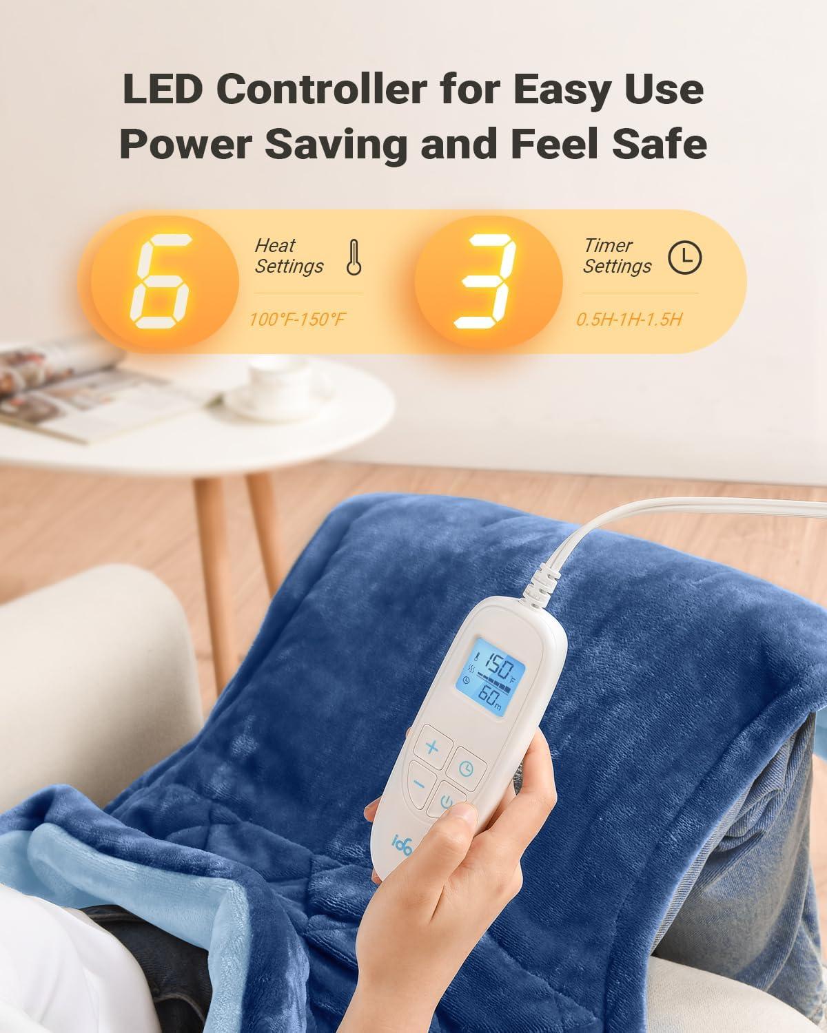 Extra-large Size for Full Body: Do you often experience muscle soreness?Our extra large heating pad is designed to help reduce stiffness in all body parts, including the neck, shoulders, back, abdomen, waist, knee and legs. Helps relieve back pain, menstrual cramps, muscular soreness, improves blood circulation and promotes healing of injured tissue. (NOTE: Please do not sit, lie on or fold the blanket and avoid direct skin contact while using)
