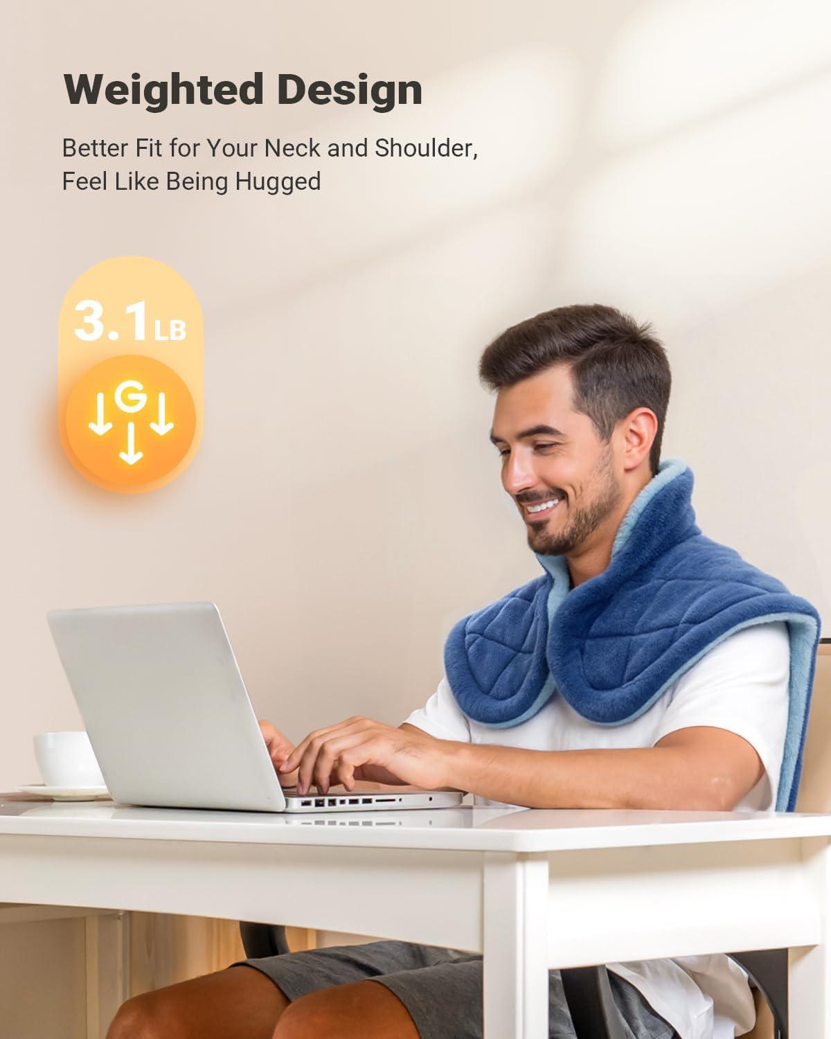 1.2lb Weighted Design: iDOO heating pad for neck and shoulders and back is thoughtfully filled with high-quality micro-glass beads, which not only keeps the neck shoulder heating pad securely in place, preventing it from slipping off, but also fits snugly so that the heat effect will be multiplied and kept longer for effective pain relief.