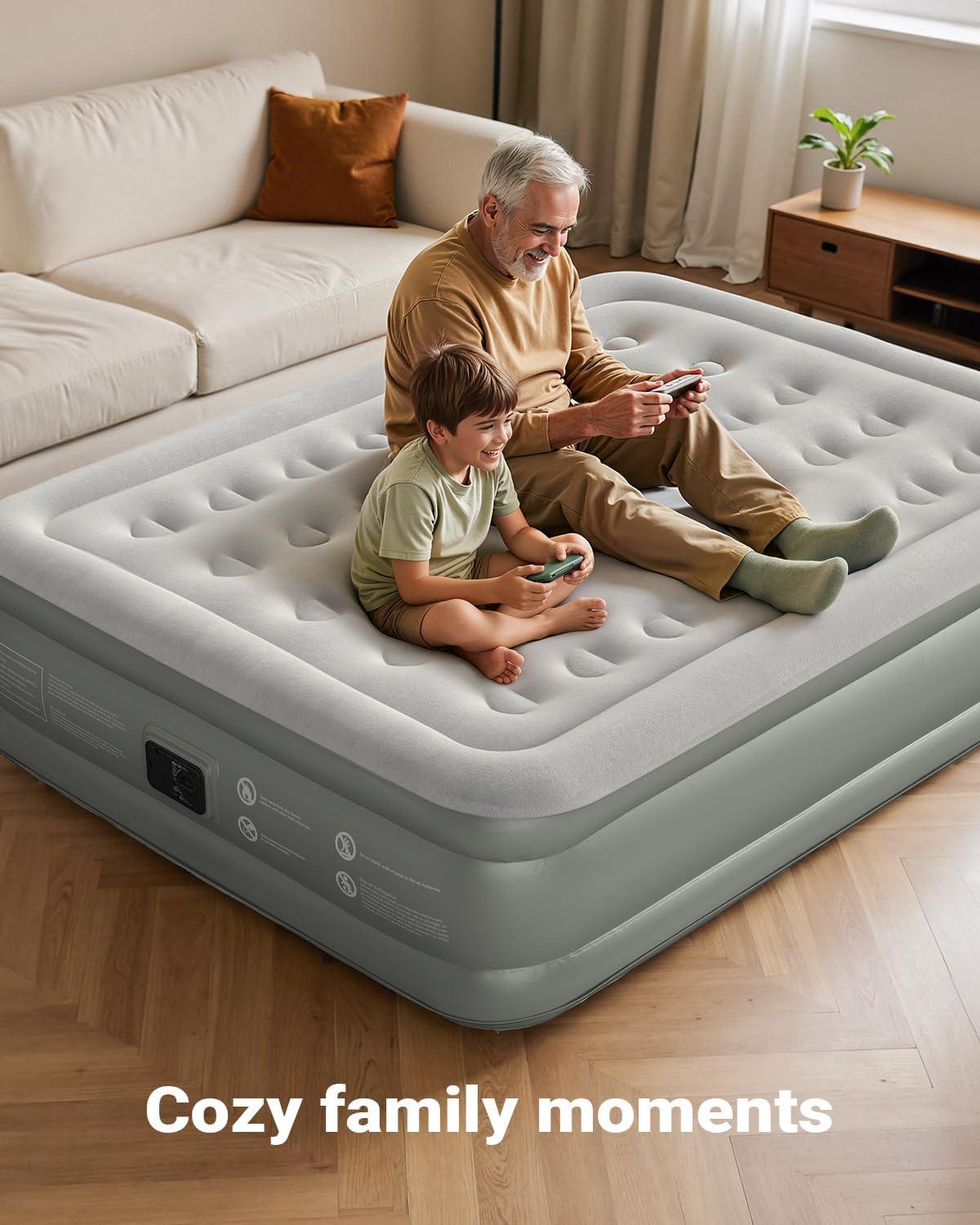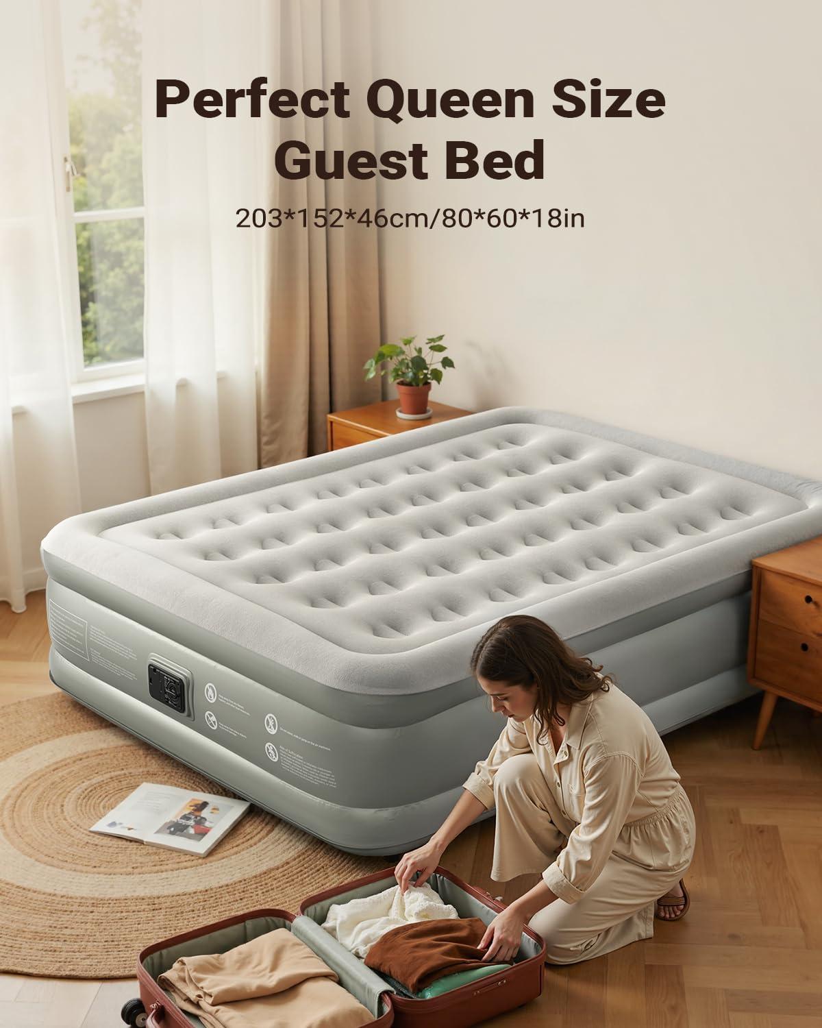 Effortless Setup: This blow up mattress queen, comes with an upgraded built-in electric Pump, can quickly inflate/deflate within 3 minutes, making airmattress queen size more convenient and efficient to use